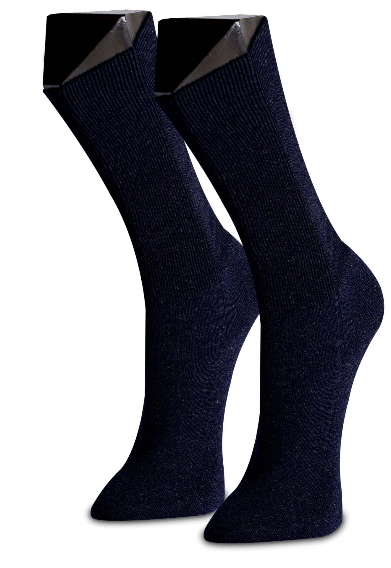 • Meia longa azul escuro sobre fundo branco