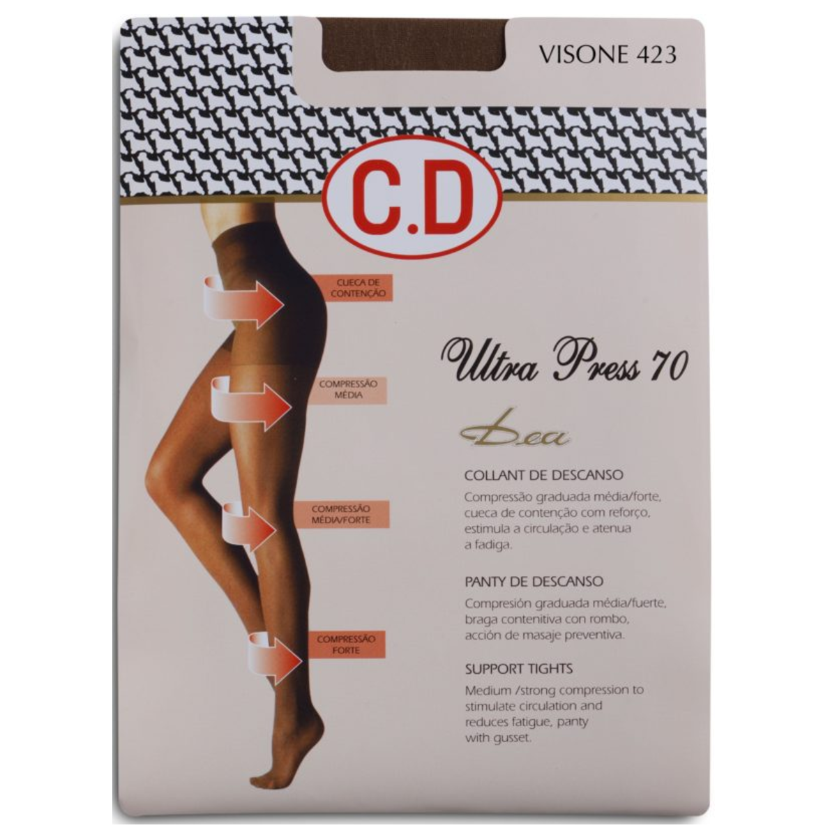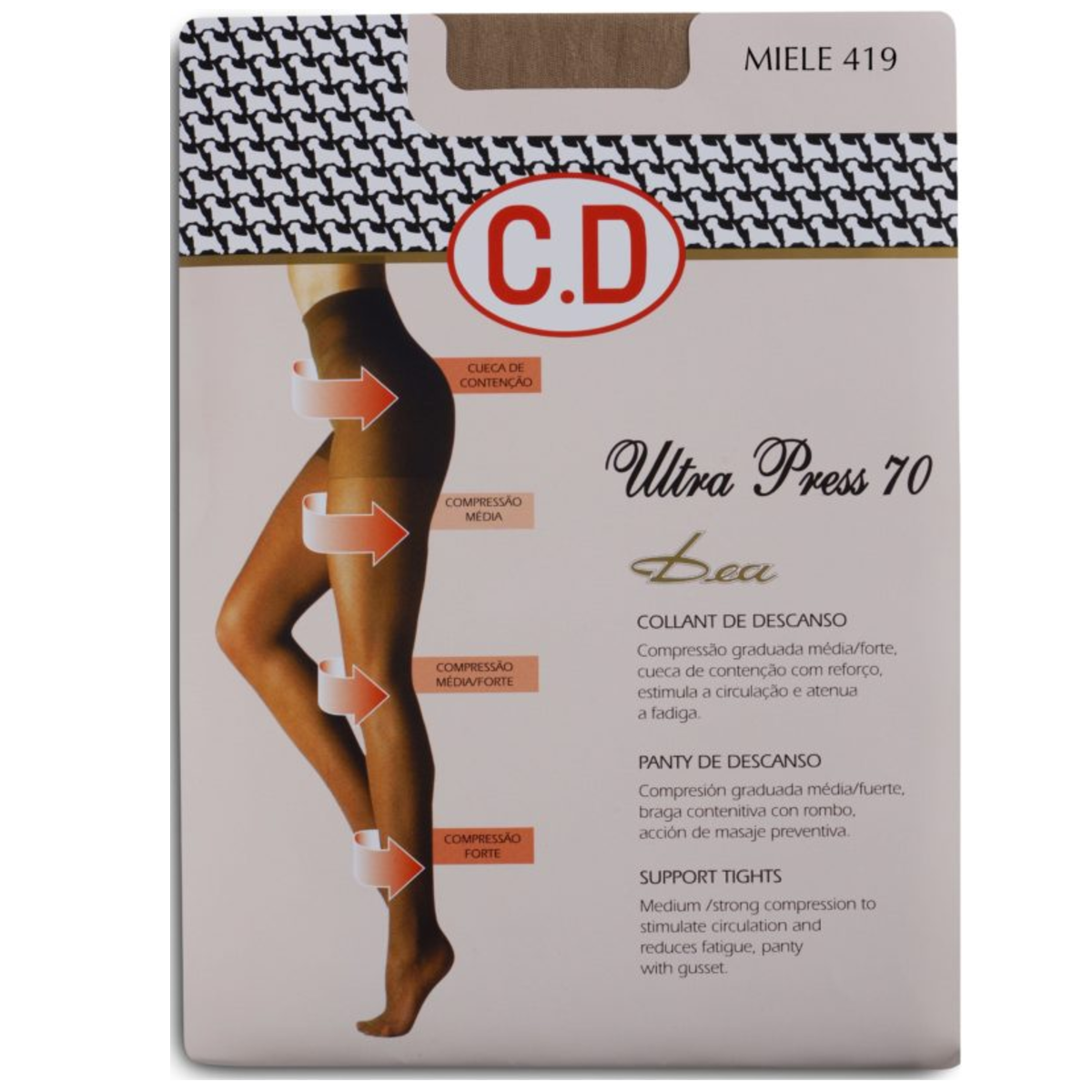 CD5011 ULTRA PRESS 70 9,90 € Desconto de %. Partilhar Cor Preto 300 Miele 419 Visone 423 Glace 583 Tamanho 2S 3M 4L XL Comprar Contactar Collant de descanso 70 den com compressão graduada média/forte. Estimula a circulação e atenua a fadiga. 76% Poliamida 24% Elastano