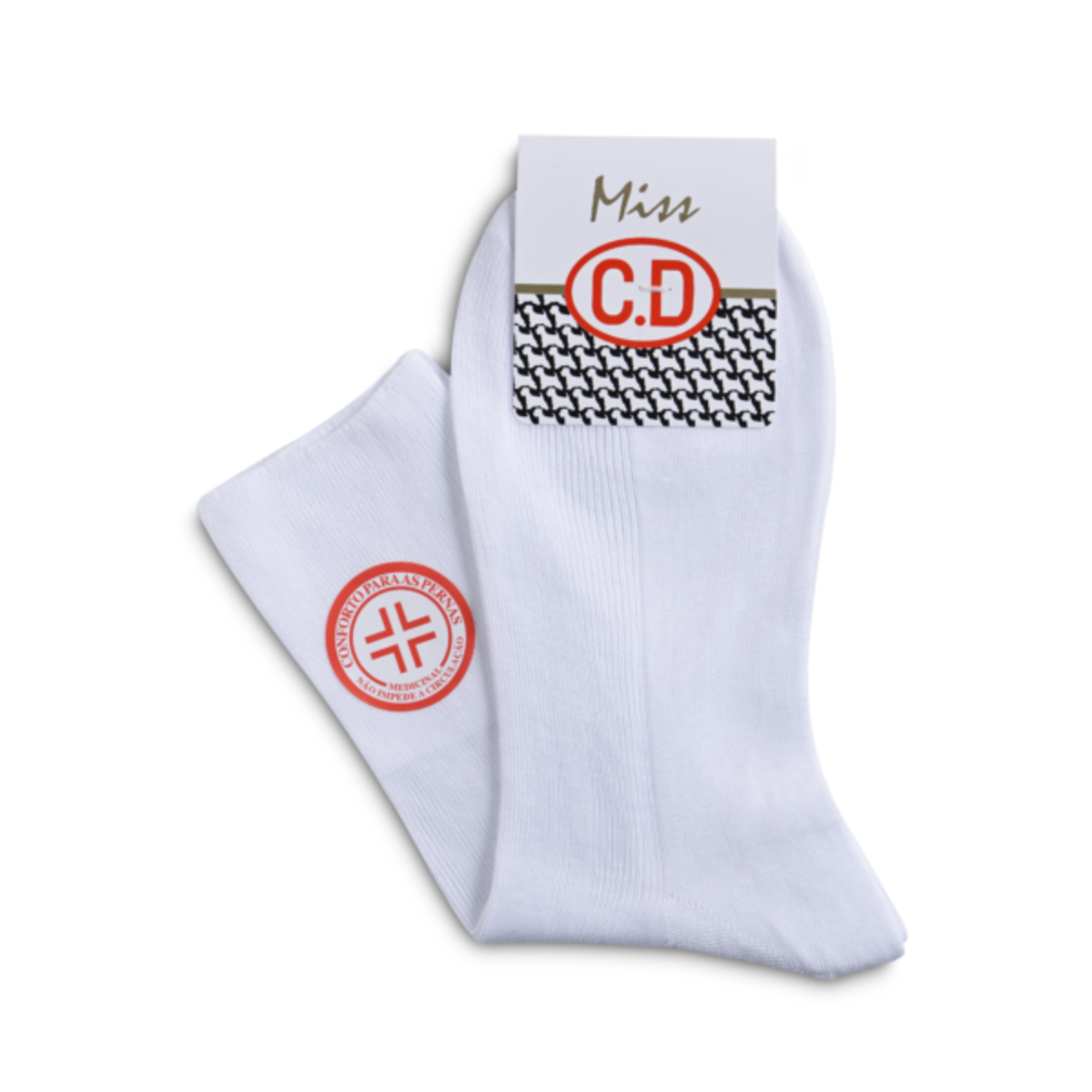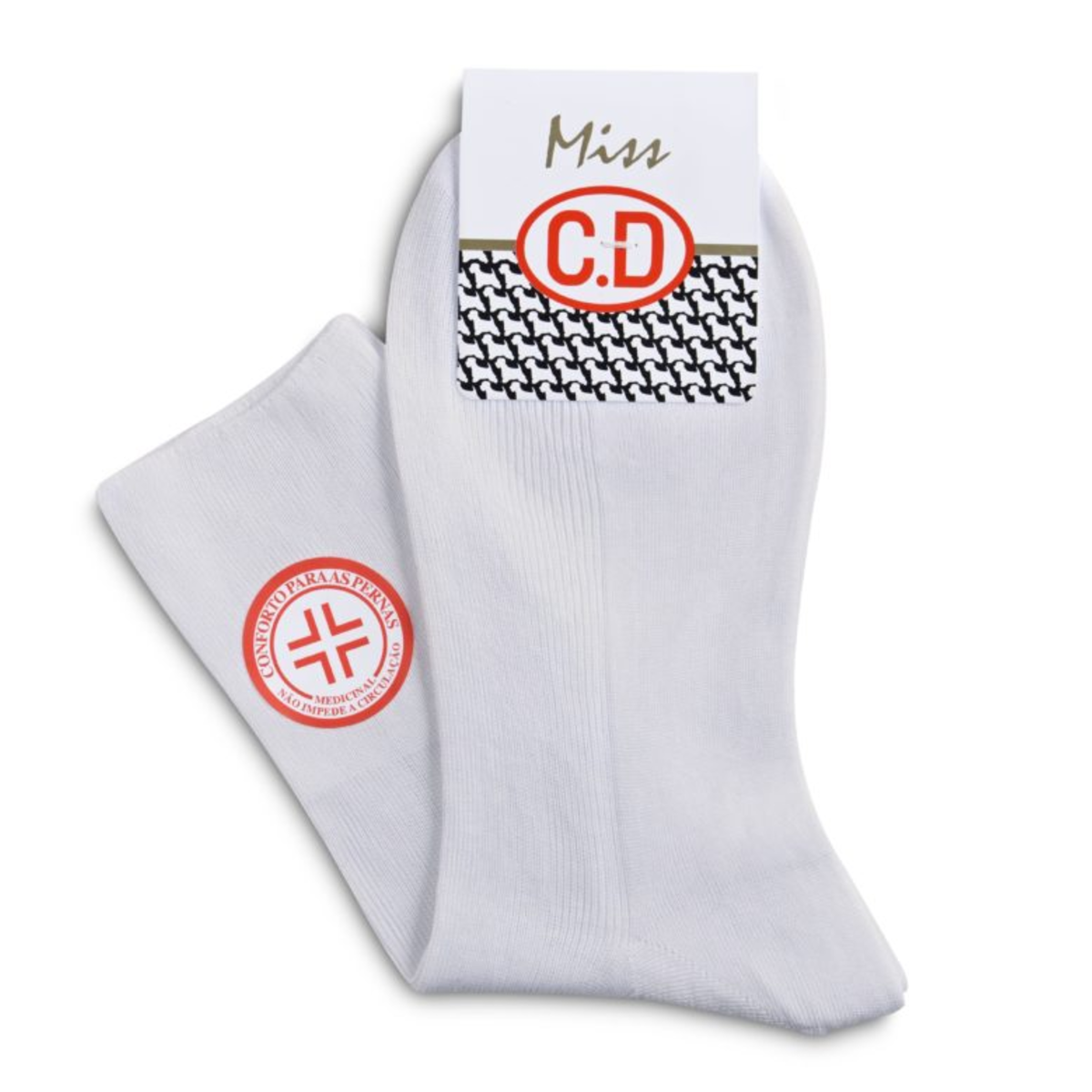 • Par de meias brancas Miss C.D com selo vermelho e etiqueta