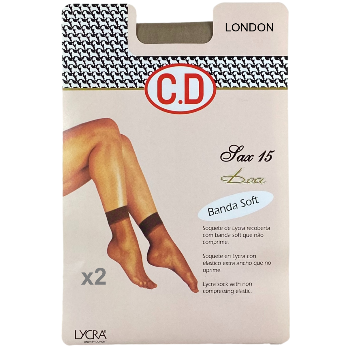 CD5504 - SAX 15 3,90 € Desconto de %. Partilhar Cor Moskade London Preto Tamanho 36/40 Comprar Contactar Embalagem com 2 pares Soquete 20 den transparente com banda soft que não comprime 87% Poliamida 13% Elastano